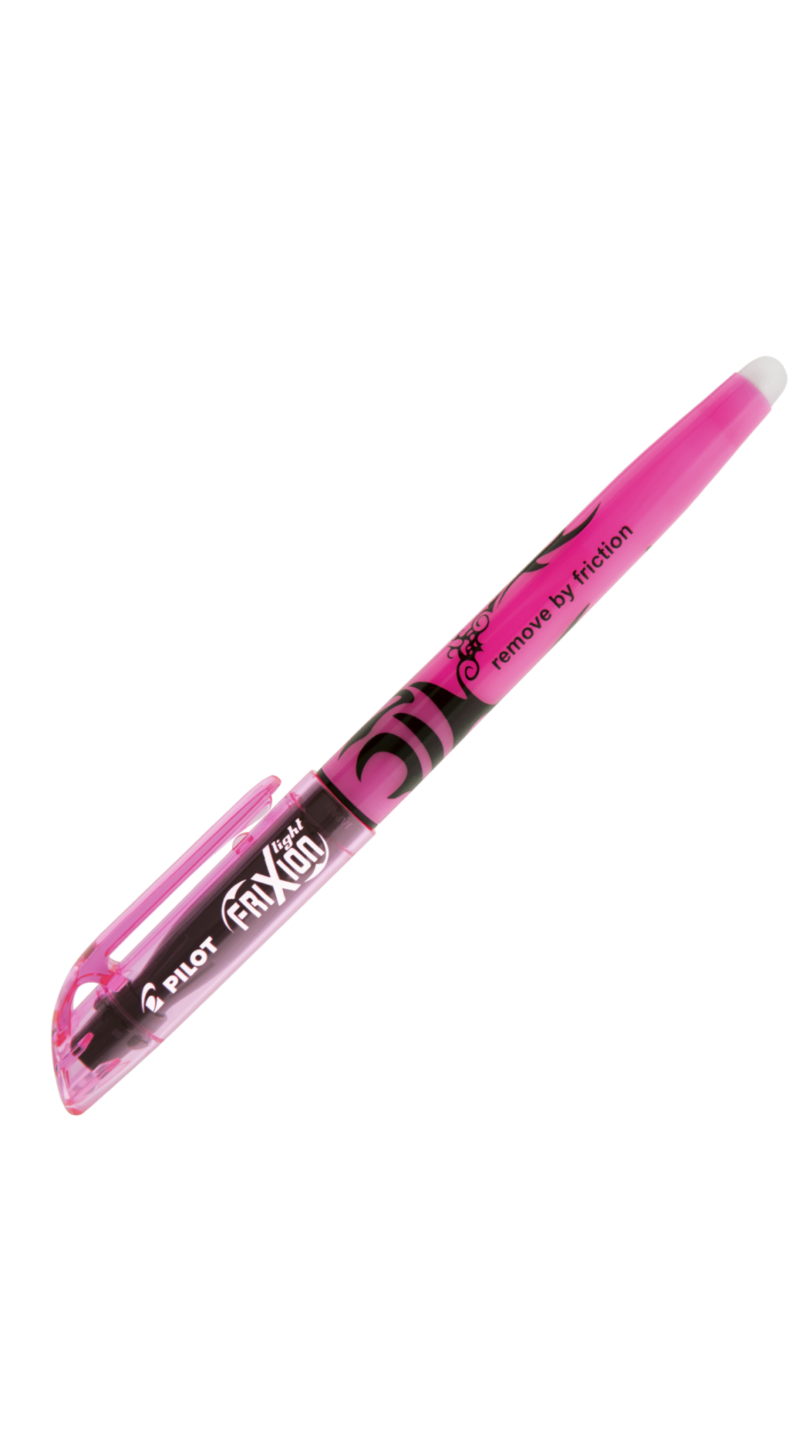 Basta simplesmente esfregar a borrachinha, aquela na extremidade do marcador, que a tinta desaparecera do papel sem manchas, tudo isso, graças a sua tinta termo sensível especialmente desenvolvida no Japão.
