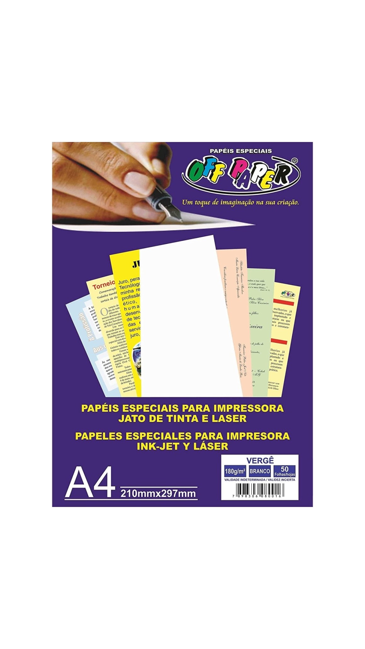 Papel Vergê Off Paper Papel texturizado para impressoras jato de tinta e laser.