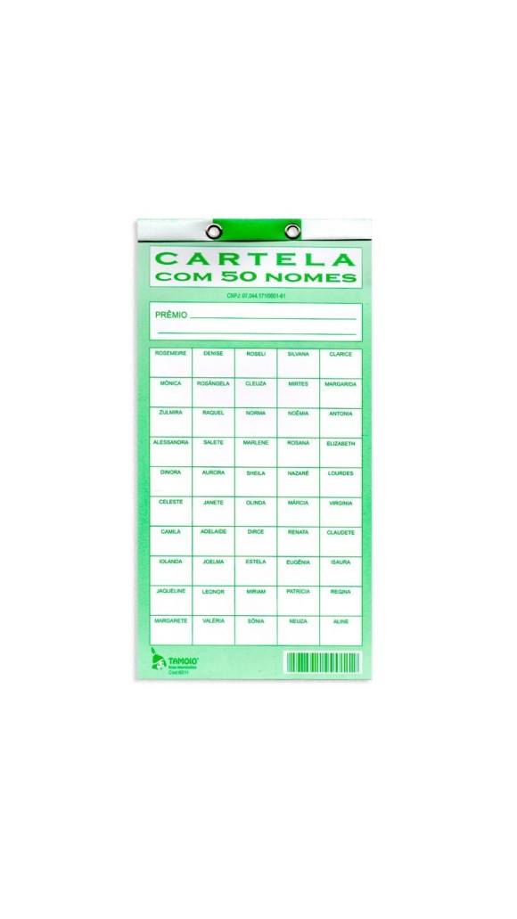 CARTELA DE RIFA COM NOMES TAMOIO PCT C/50 UNID.