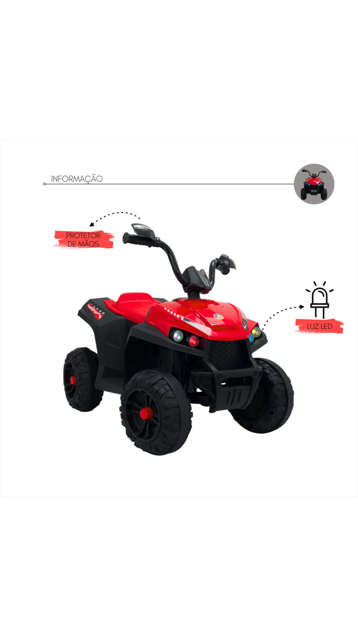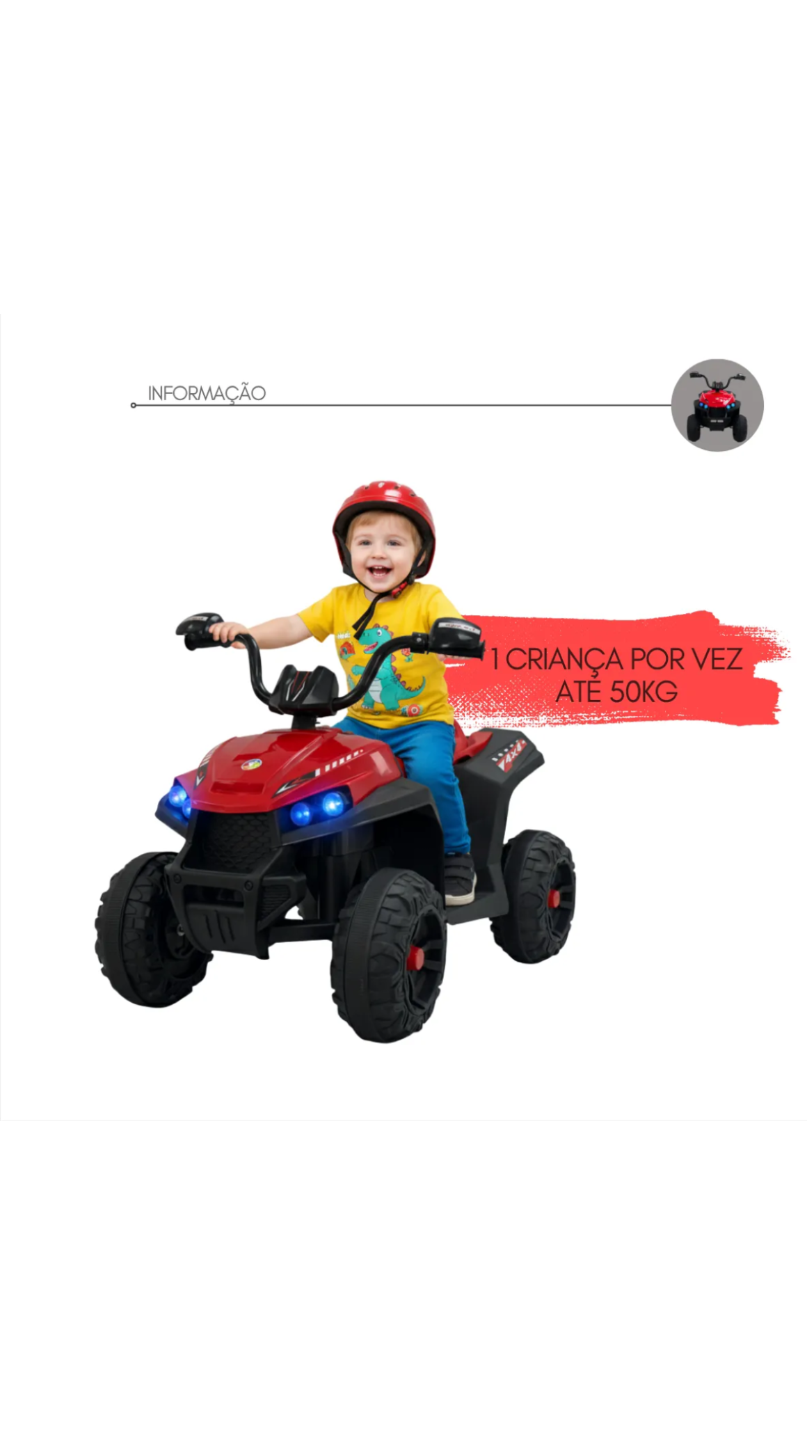 O Speedtrail Rider 12V é um ATV infantil elétrico pensado para oferecer emoção com total segurança. Ideal para famílias que prezam por qualidade, resistência e diversão ativa. Design robusto, acabamento moderno e funções realistas tornam esse quadriciclo um verdadeiro presente de destaque.