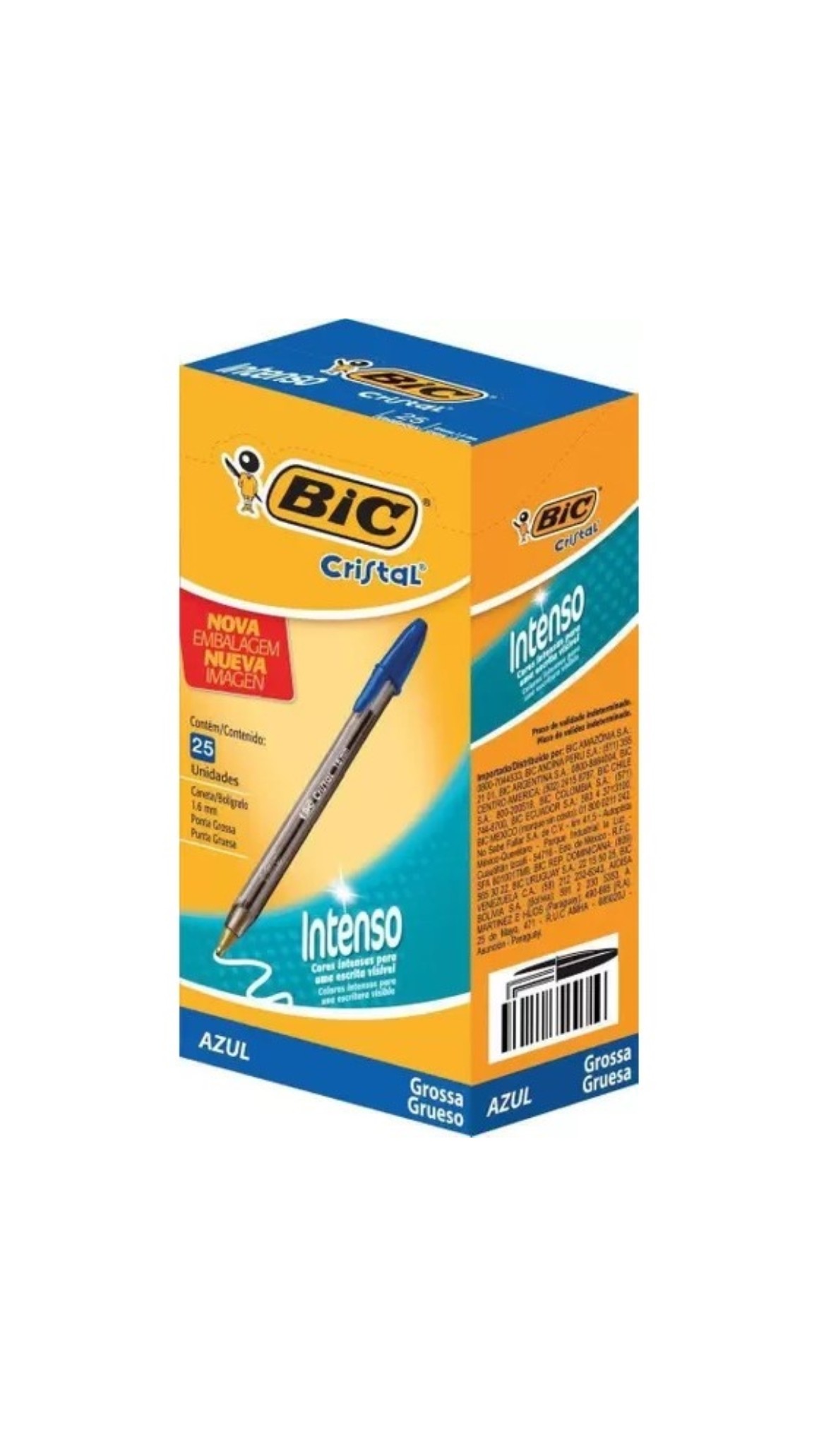 As canetas esferográficas BIC Cristal Intenso tem ponta grossa 1,6mm e escrita intensa, que proporciona maciez e um deslizar ultra fácil. Possui tampa ventilada que garante a segurança do produto. Com a linha de materiais da BIC você garante toda a qualidade necessária para realizar suas tarefas diárias e trabalhos impecáveis. Com modelos e funções diferentes, a linha BIC é ideal para decorar sua mesa de trabalho, seu material escolar ou seu escritório te ajudando a manter sempre por perto tudo o que precisa. A caneta BIC Cristal Intenso é ideal para o uso no dia a dia, prática e eficinte.